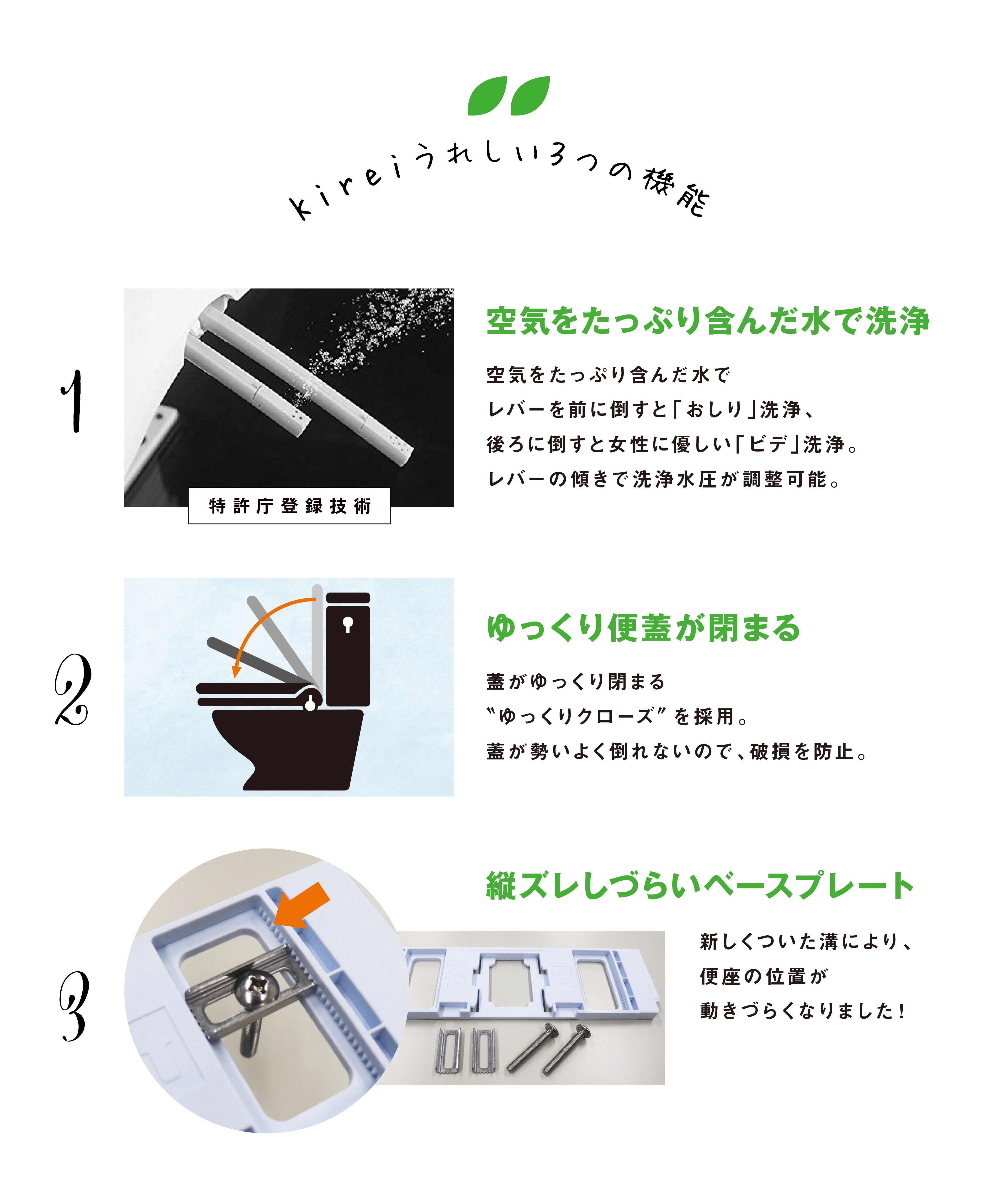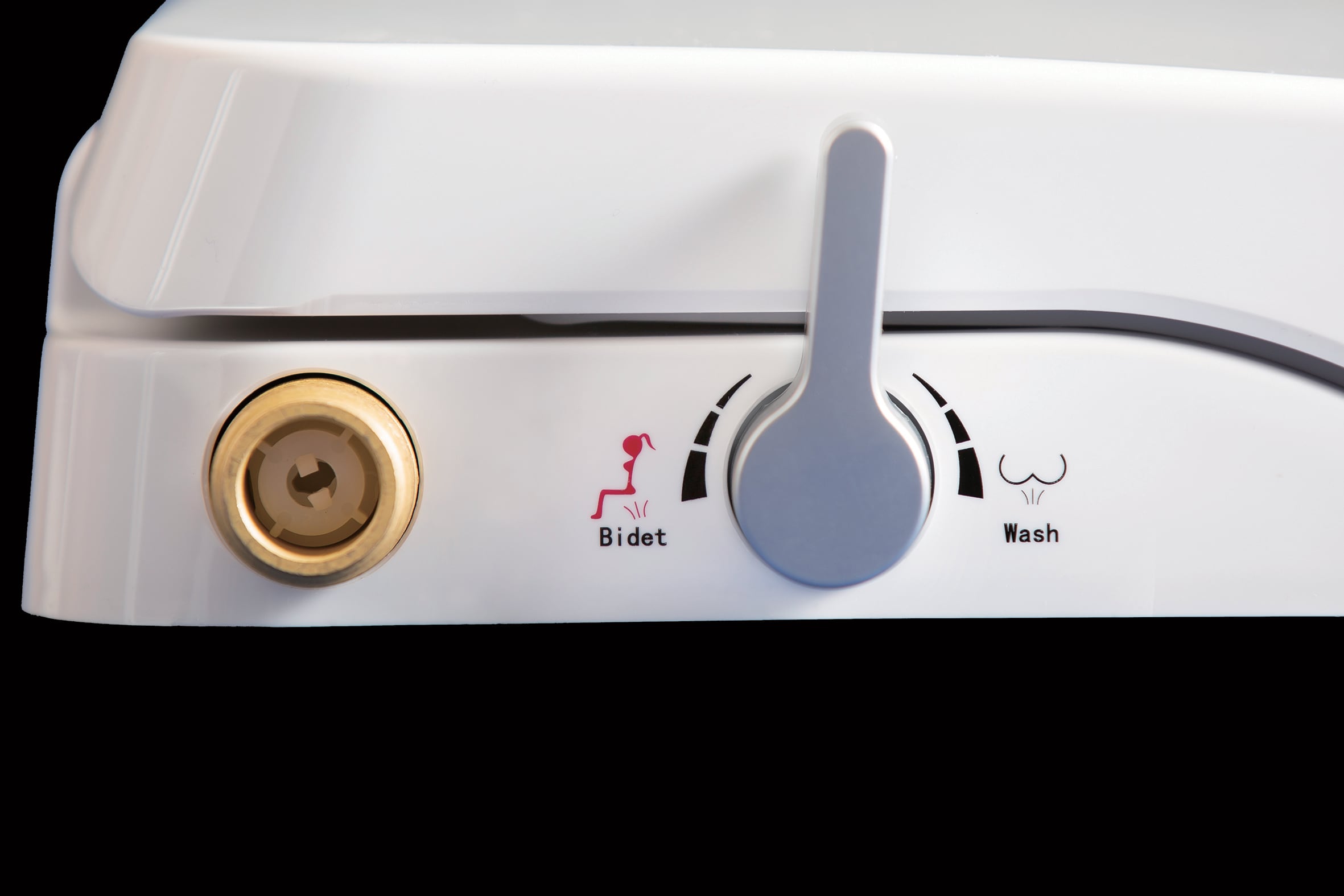 ③レバーで洗浄圧調整、「おしり洗浄」と女性に優しい「ビデ洗浄」機能付