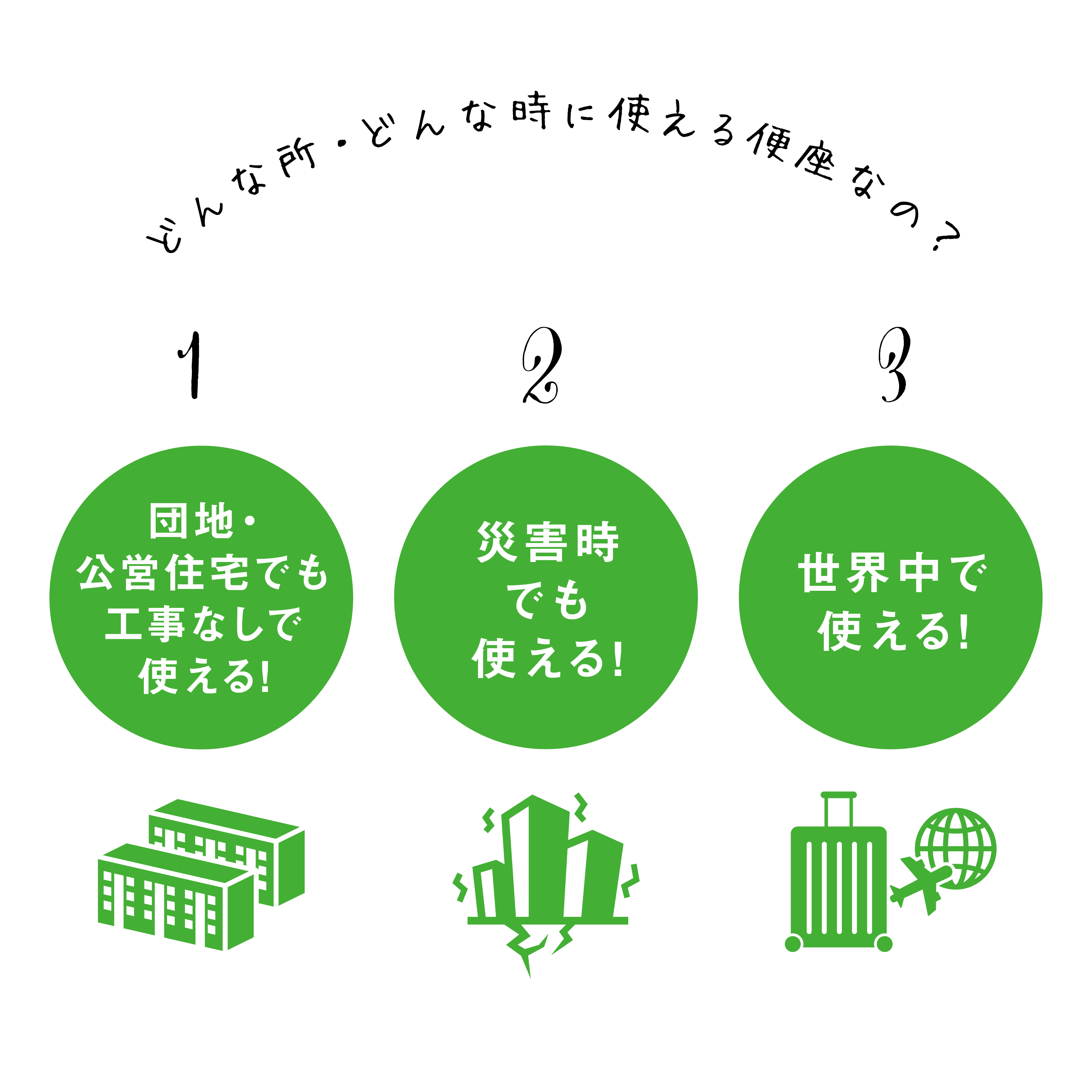 ②水道さえ通っていれば世界中で使用可能※一部条件あり
