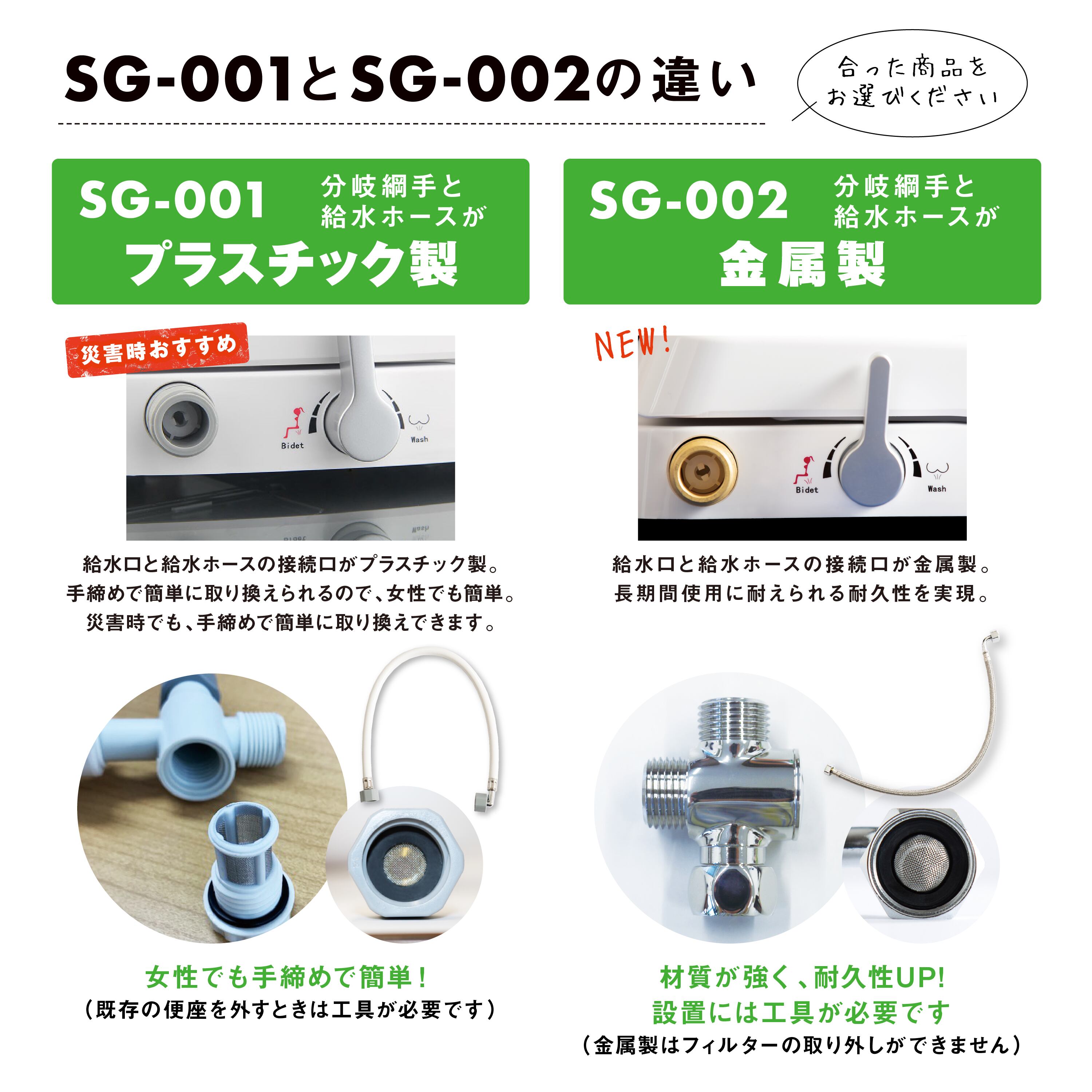 ⑧分岐継手と給水ホースが金属製になり耐久性が大幅向上!
